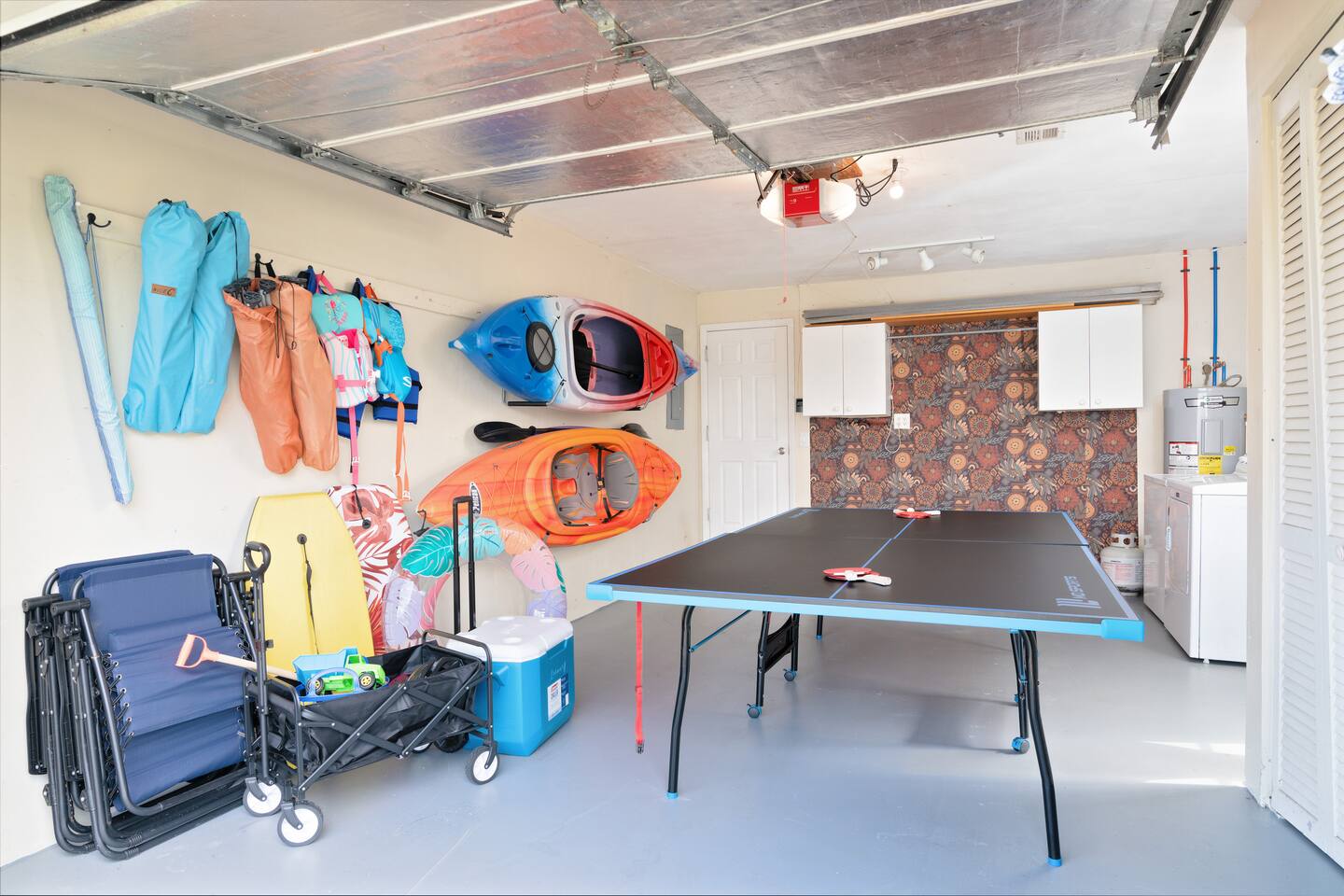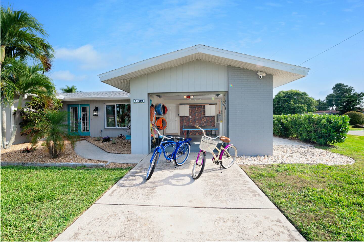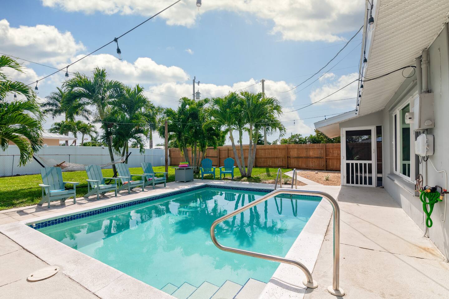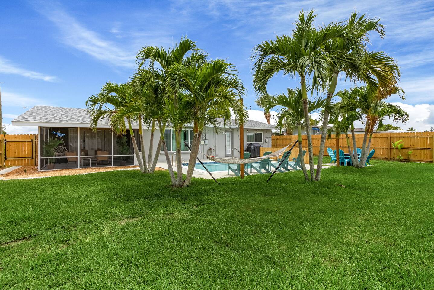 Welcome to your bright, modern launchpad for exploring Southwest Florida! Flooded with natural light, the airy, open-concept living space invites you to unwind the moment you arrive. Step outside to your personal paradise: a fully-fenced backyard featuring a sparkling pool, a relaxing hot tub, and a gas firepit perfect for evening conversations. Lounge in the hammock, sway in the swing chair, or enjoy a meal fresh off the Blackstone grill. As evening falls, the enclosed patio comes alive with the glow of string lights, creating the perfect ambiance. Sleeping Arrangements (Sleeps 6): - Master Bedroom: Queen-sized bed, TV, and an optional rollaway twin bed. - Spare Bedroom: Queen-sized bed with an XL twin trundle. Bathrooms: Two full-size bathrooms are available for your convenience. Entertainment & Recreation: The garage is your personal activity hub, packed with: - Beach Essentials: Boogie boards, umbrellas, wagon, cooler, and chairs. - Games: Ping-pong table, corn-hole, and darts. - Water Sports: Two kayaks with life jackets. - Local Exploration: Two beach cruiser bikes with helmets.