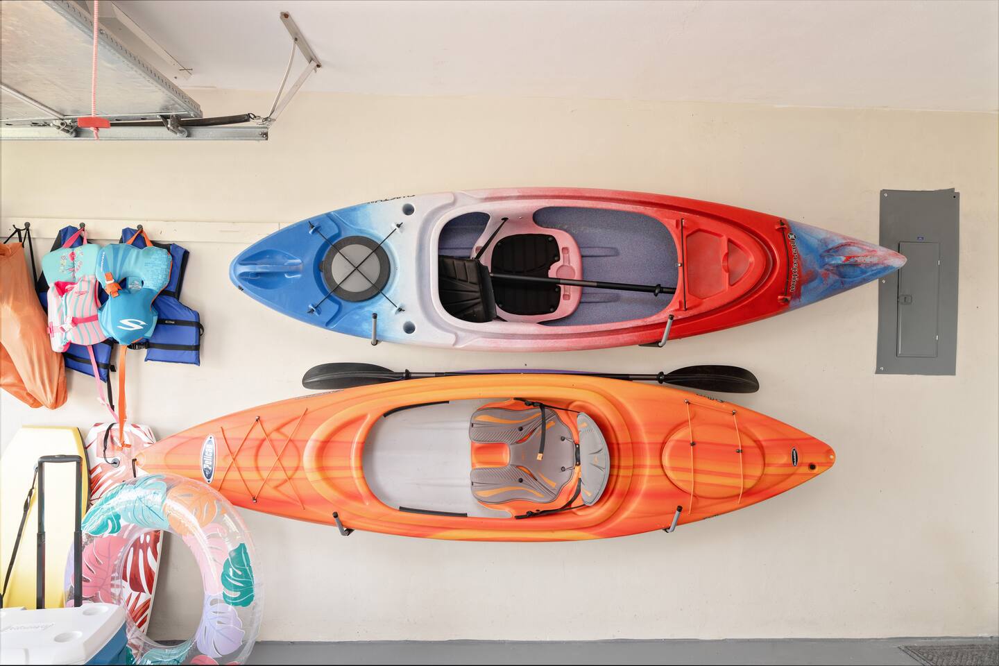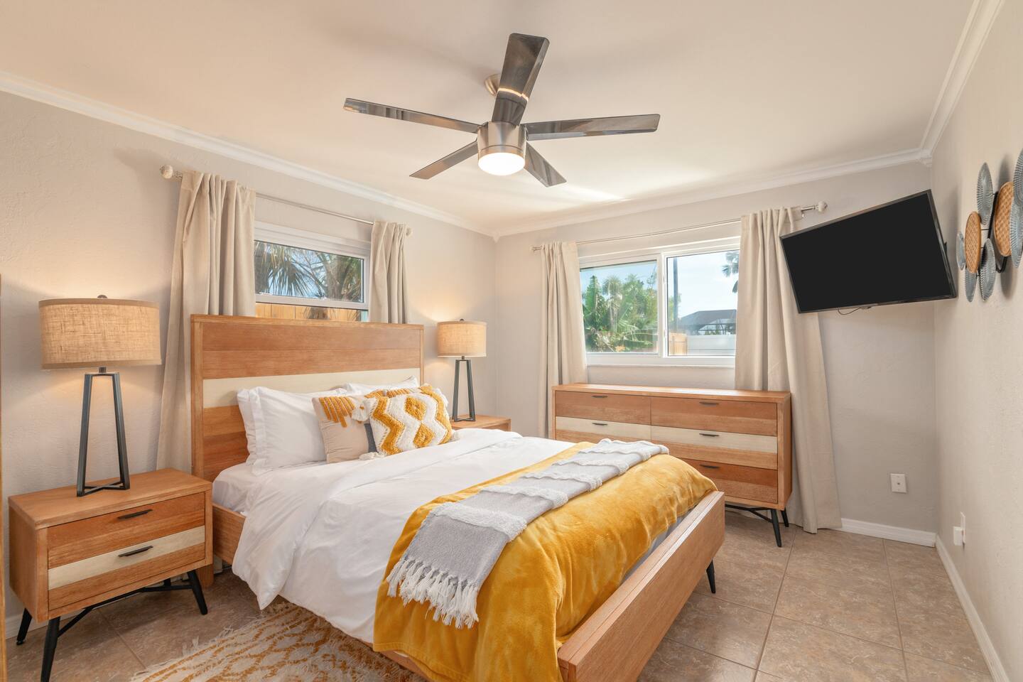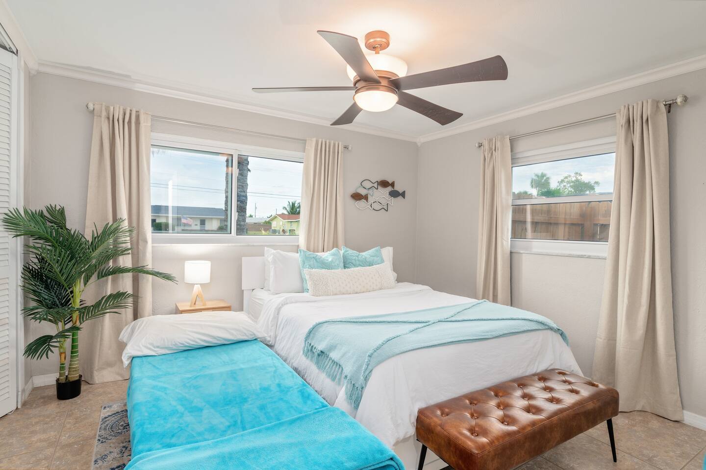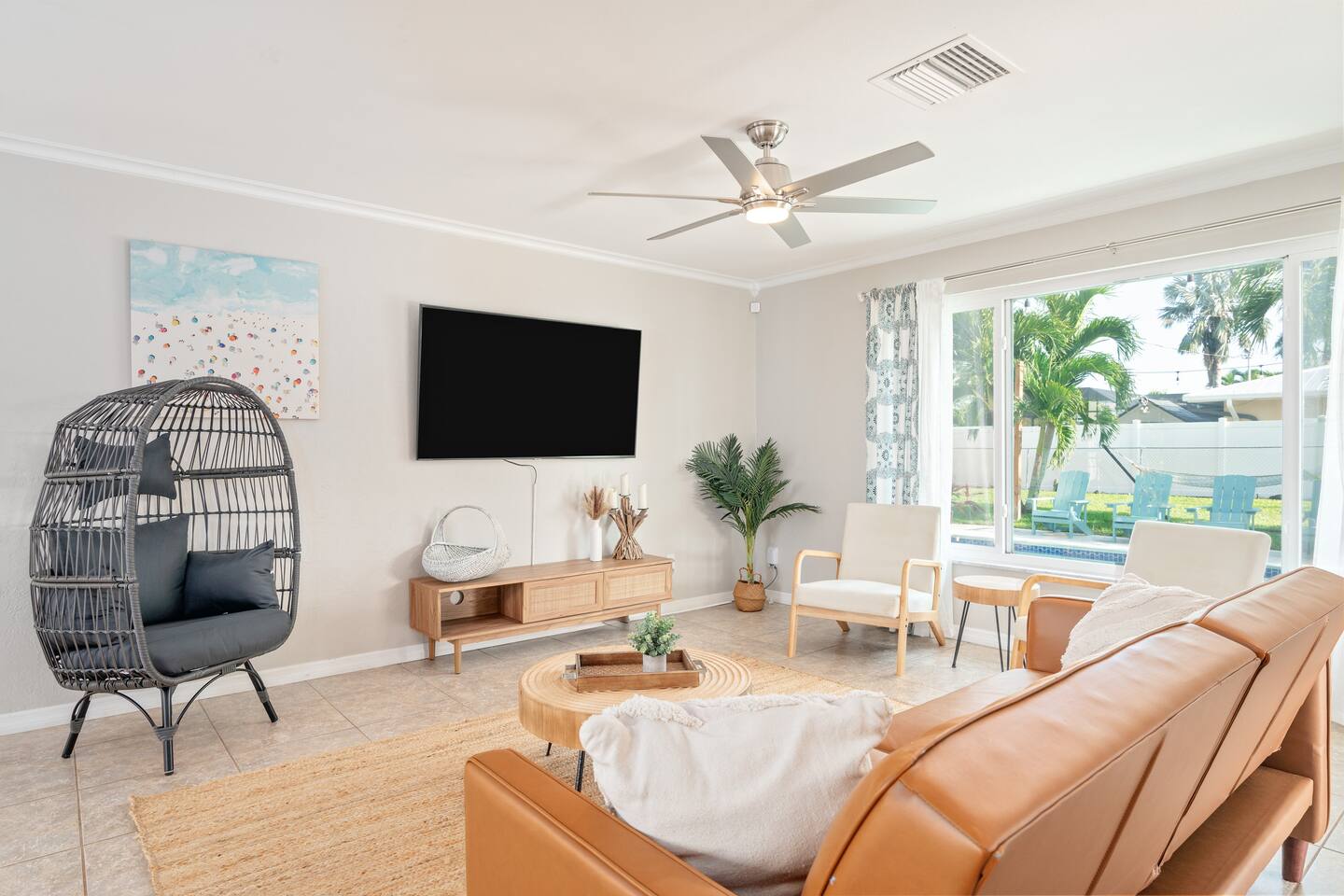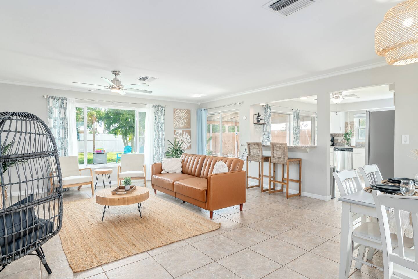 Welcome to your bright, modern launchpad for exploring Southwest Florida! Flooded with natural light, the airy, open-concept living space invites you to unwind the moment you arrive. Step outside to your personal paradise: a fully-fenced backyard featuring a sparkling pool, a relaxing hot tub, and a gas firepit perfect for evening conversations. Lounge in the hammock, sway in the swing chair, or enjoy a meal fresh off the Blackstone grill. As evening falls, the enclosed patio comes alive with the glow of string lights, creating the perfect ambiance. Sleeping Arrangements (Sleeps 6): - Master Bedroom: Queen-sized bed, TV, and an optional rollaway twin bed. - Spare Bedroom: Queen-sized bed with an XL twin trundle. Bathrooms: Two full-size bathrooms are available for your convenience. Entertainment & Recreation: The garage is your personal activity hub, packed with: - Beach Essentials: Boogie boards, umbrellas, wagon, cooler, and chairs. - Games: Ping-pong table, corn-hole, and darts. - Water Sports: Two kayaks with life jackets. - Local Exploration: Two beach cruiser bikes with helmets.